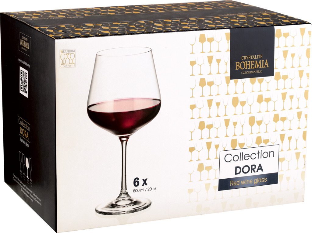 Набор из 6 бокалов для вина CRYSTALITE BOHEMIA Dora объемом 600мл каждый. Сделаны из хрустального стекла высочайшего качества. Форма бокала позволяет оценить цвет и прозрачность напитка. Рекомендуется очищать под теплой проточной водой с добавлением мягкого моющего средства. CRYSTALITE BOHEMIA – известнейший бренд с более чем вековой историей, настоящий лидер Европы по стеклянным изделиям.