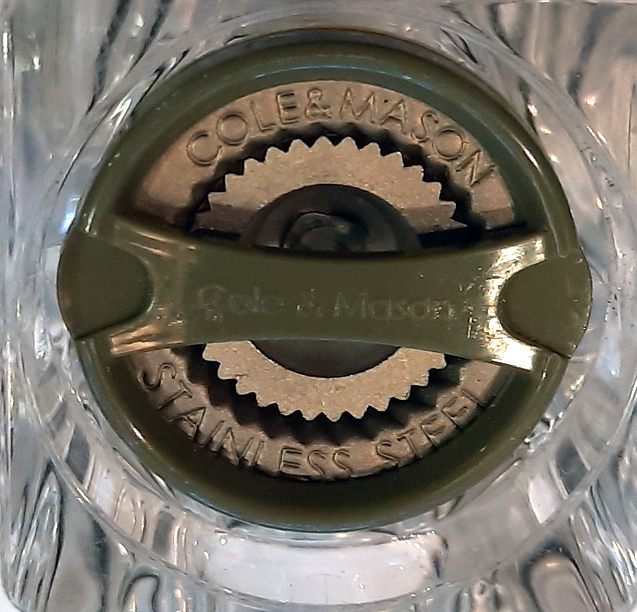 Необыкновенно изящная мельница с корпусом, сделанным из прозрачного пластика. Удобно держать в руке, удобно пользоваться, можно быть абсолютно уверенным в качестве рубящих специи ножей — на них марка даёт пожизненную гарантию.