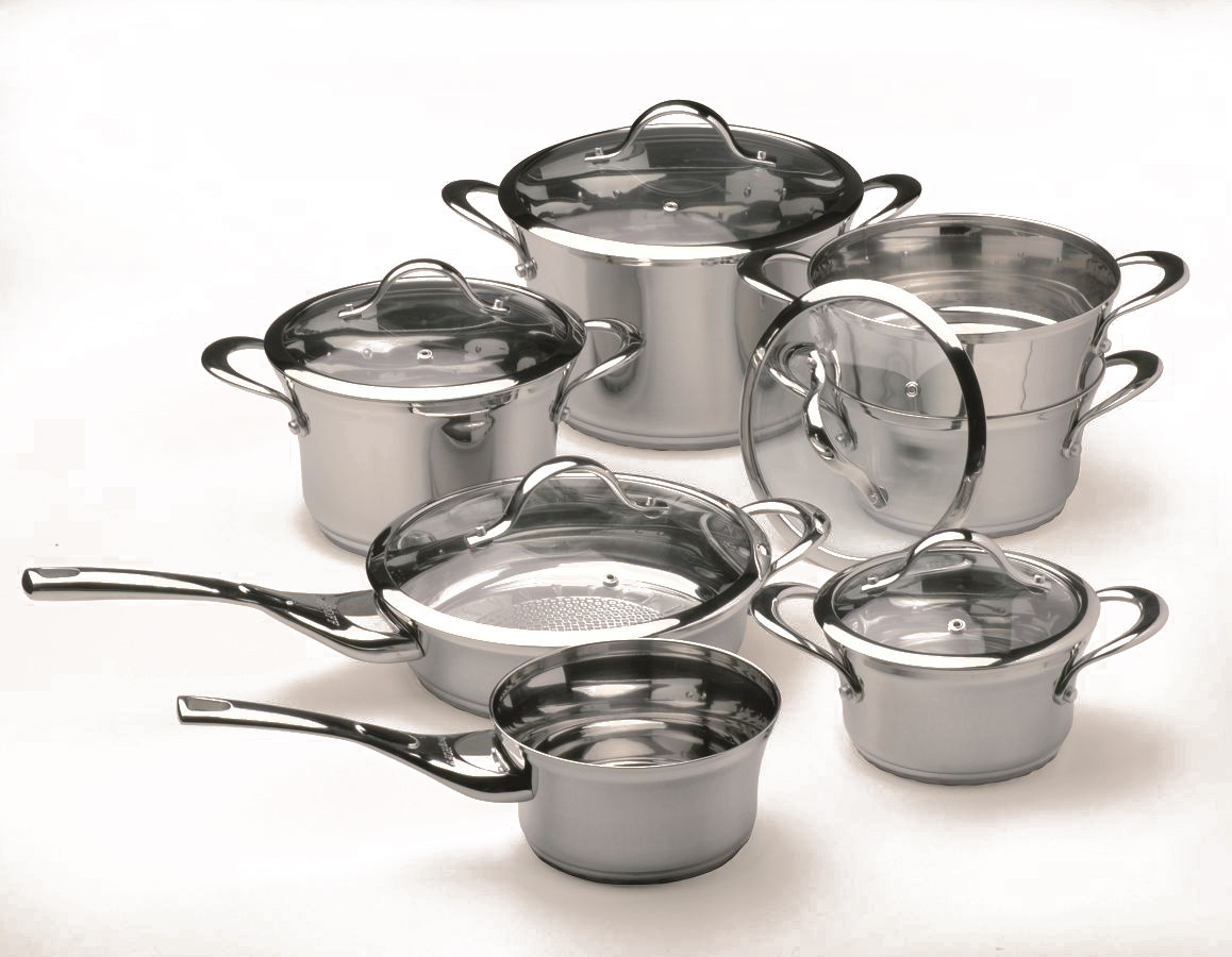 Состав набора: ковш 16 cm 1,3л , кастрюля с крышкой 16 cm 1,3л , кастрюля с крышкой 18 cm 1,8л , кастрюля с крышкой 20 cm 3л , бульонная кастрюля с крышкой 24 cm 5,4л , глубокая сковорода с крышкой 24 cm 2,3л , вставка-пароварка 20 cm.
